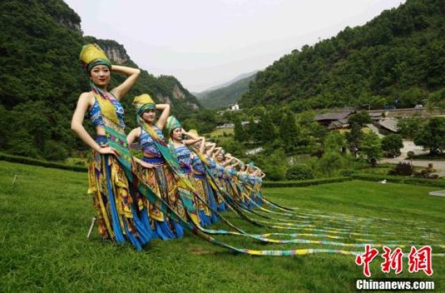 5月3日,湖南張家界武陵源黃龍洞風(fēng)景區(qū)的青年員工身著盛裝,上演了一場精彩的苗族頭帕秀,喜慶五四青年節(jié)的到來。